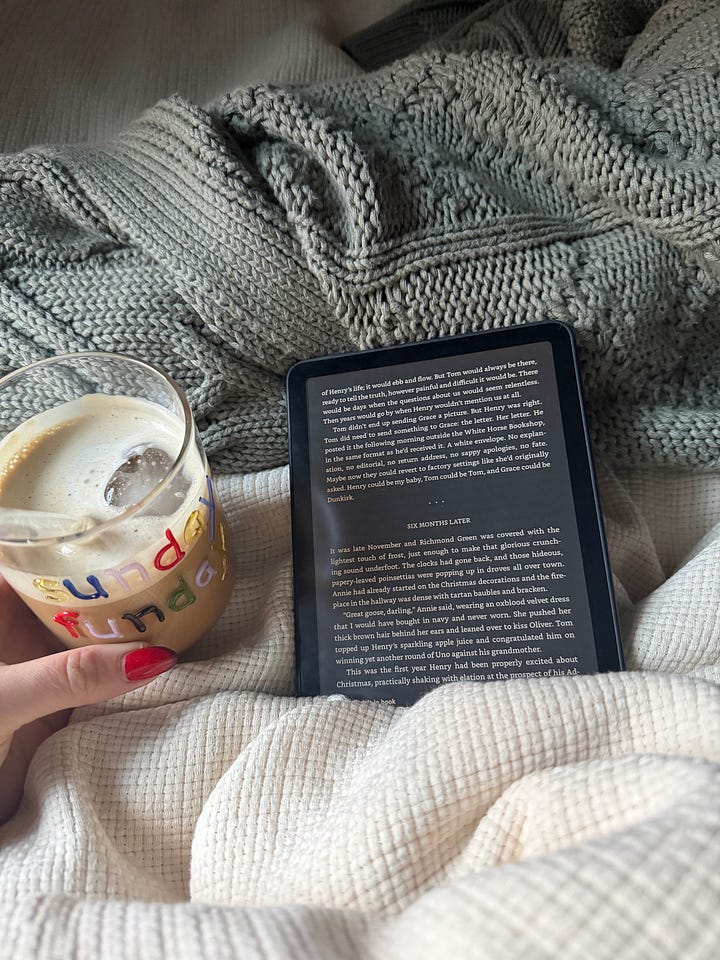 So it feels fitting that this morning unfolded as my ideal start to a Sunday: I woke up gently to my Hatch alarm, made an iced cortado in my Sunday Funday cup my friend Chelsea Martin got me, and burrowed back in Boll & Branch sheets to finish into the last 18% of Finding Grace by Loretta Rothschild. This book had me hooked from the beginning, but what I didn’t see coming was the full-body sobs evoked by the ending. Talk about catharsis.
