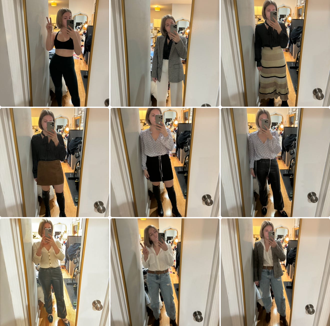 This is the step that changed everything for me. Once you’ve edited down to a tight selection, you MUST try on every outfit you plan to bring and photograph it on your body. Why?