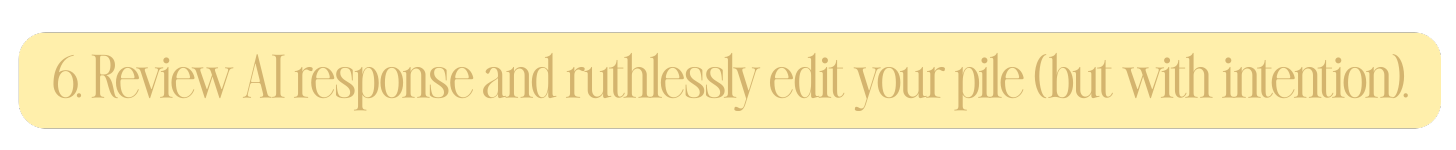 Now, you’re able to return to your initial pile with clarity and your blueprint in hand. At this stage, I’m specifically looking at the categories of clothing I should pack, in which Chat tells me how many tops (in sections), bottoms, dresses, layers, shoes, and accessories to bring.