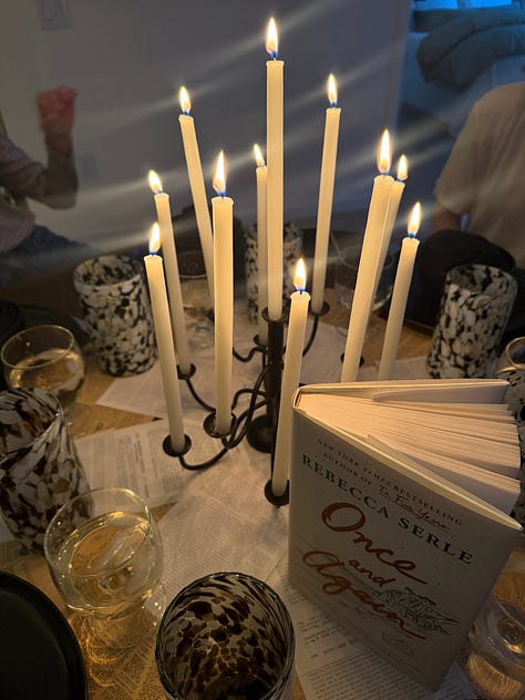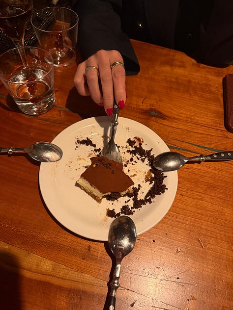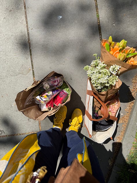 The week leading up to tonight’s departure has been a bit nutty. A West Village Book Club meeting hosted flawlessly by OTB. Lila Raicek’s debut book, The Plunge, launch at McNally Jackson, moderated by Griffin Dunne with a special appearance by artist Karyn Lyons whose striking work graces the cover. Provisioning allllll the things (my fave sport!!!!) at the Union Square Farmer’s Market to curate a pretty little spread for Emily Brillanti’s baby shower. A very special birthday dinner for our dear Jenna in the wine cellar at Roscioli. Dancing to The Muses’ set at Jean’s with the girls. Goodbye drinks amid last night’s pouring rain (emblematic of my tears?) for friends before they head off to San Fran. And now, right where all roads lead for me on Sundays—curled up in my bed editing this edition of TSS.